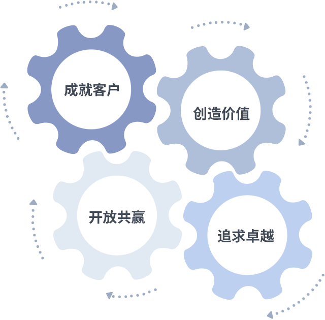 成就客户是一切决策的出发点,创造价值是衡量所有工作的标准,追求卓越是z6人生就是博做事做人的态度,开放共赢是z6人生就是博的格局也是最终的结果。价值观的齿轮环环相扣,推动着组织里的每个人不断向前。